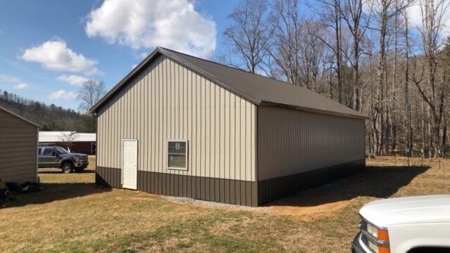 Enclosed pole-style buildings with or without insulation, available with walk in doors, garage doors, sliding barn-style doors.